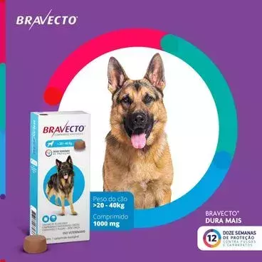Bravecto 20 a 40kg elimina pulgas e carrapatos com uma única dose, protegendo seu cão e sua casa por até 12 semanas. Desenvolvido pela MSD Saúde Animal, o antipulgas tem ação rápida, longa duração e de fácil administração, garantindo eficácia no combate às infestações.