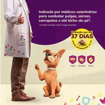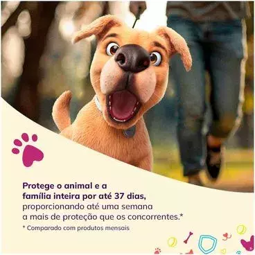 O Defenza Antipulgas e Carrapatos é um medicamento contra pulgas, carrapatos e sarnas que dura até 37 dias, o maior tempo de ação entre as soluções mensais. Além disso, também protege contra Tunga penetrans, o bicho-de-pé, uma zoonose que pode acometer animais e humanos.